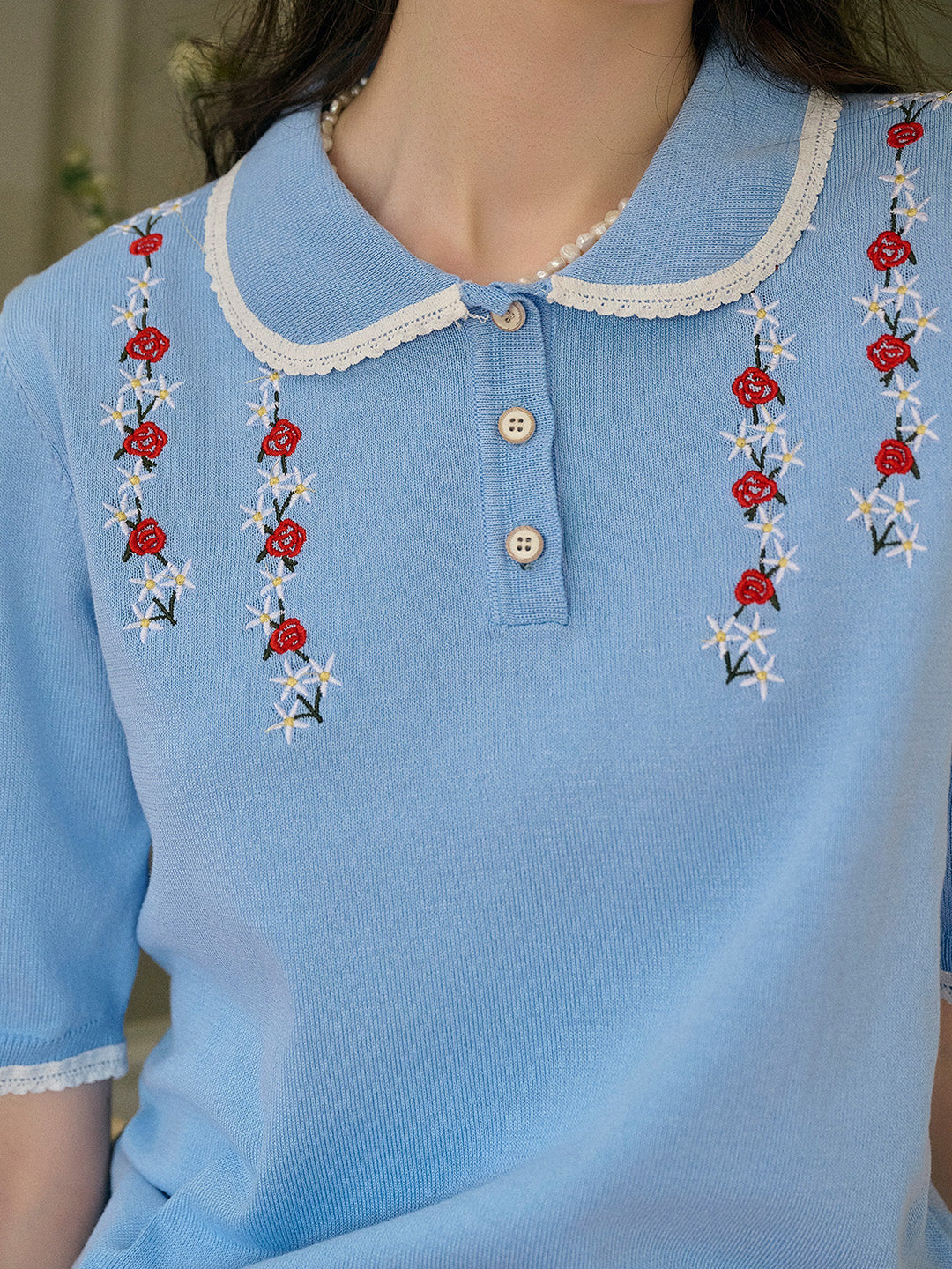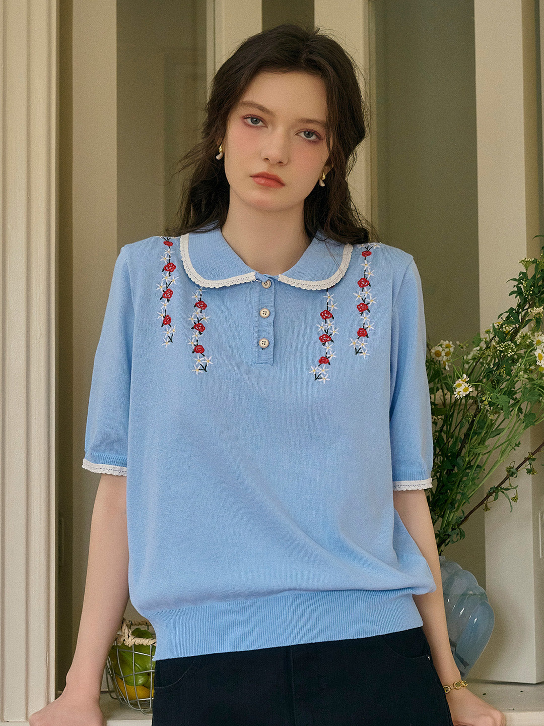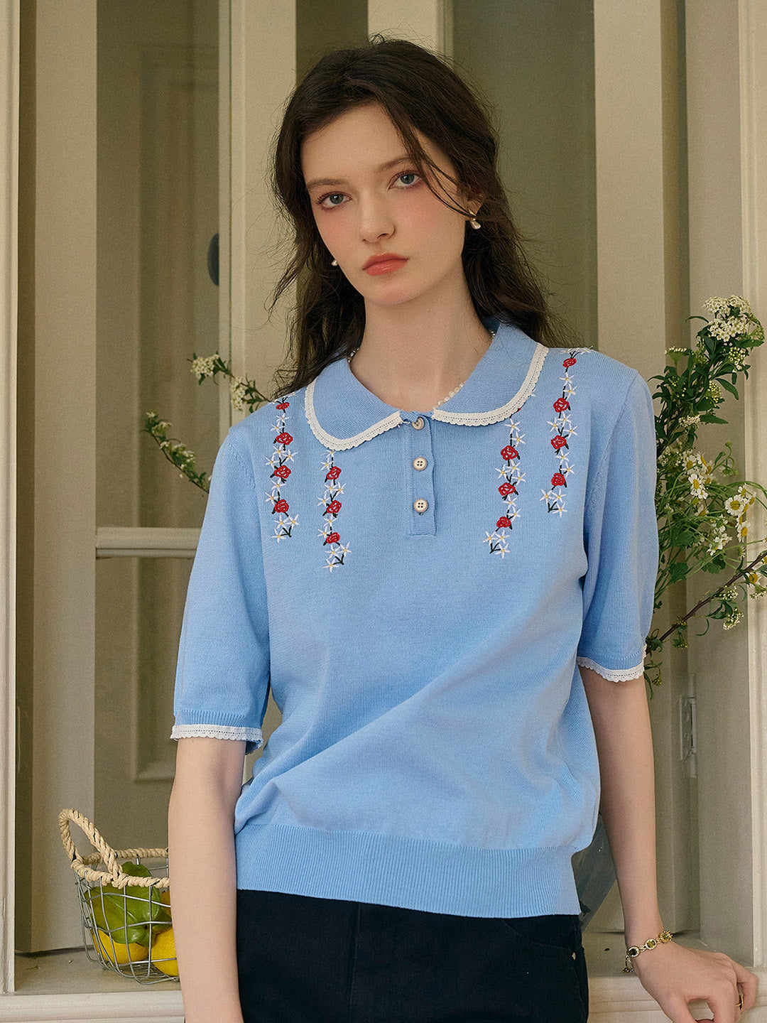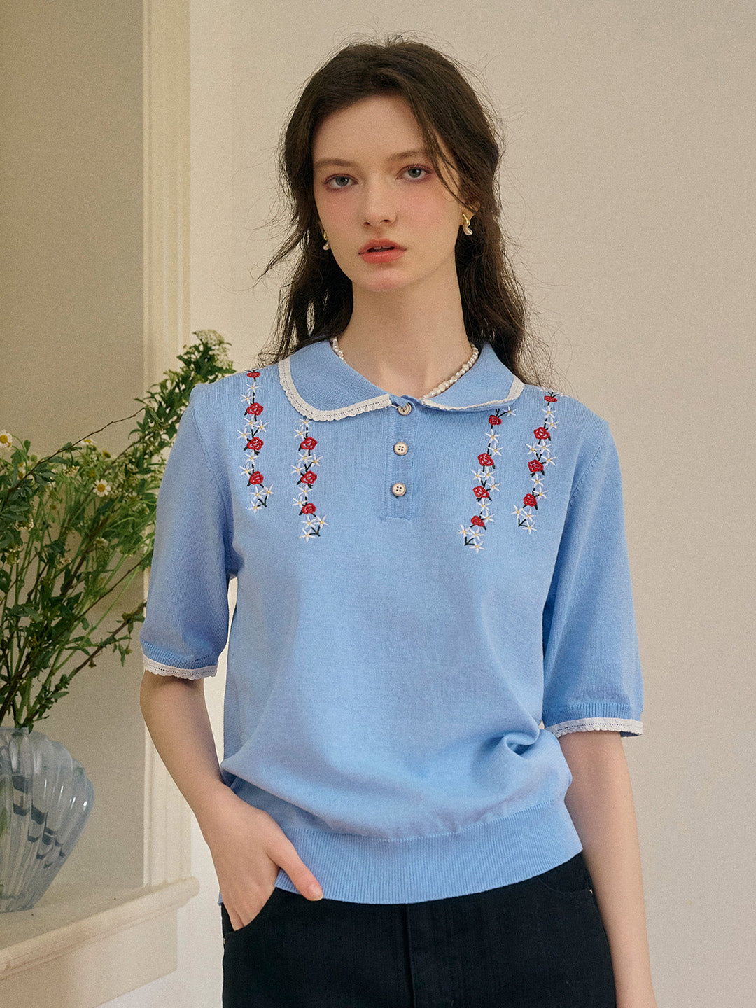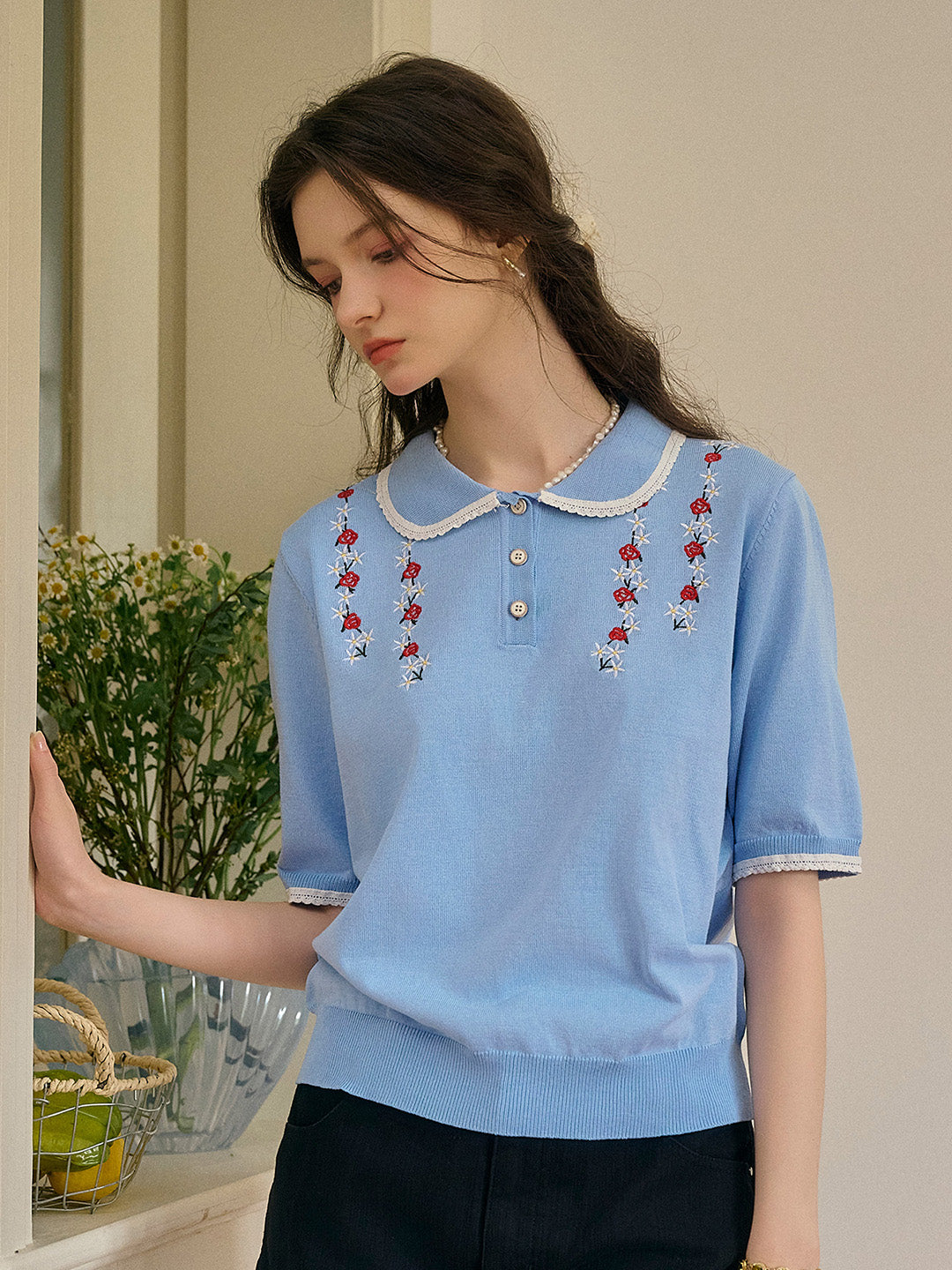 Anya 彼得潘領刺綉針織上衣