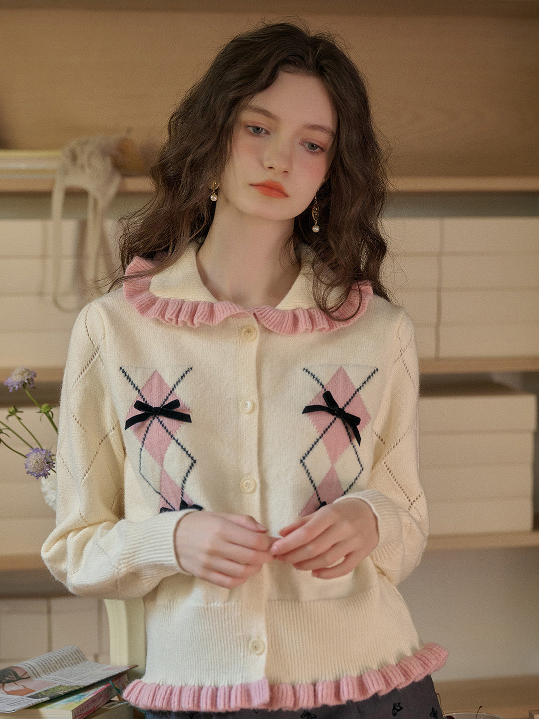 Chandler 荷葉邊領蝴蝶結開襟衫