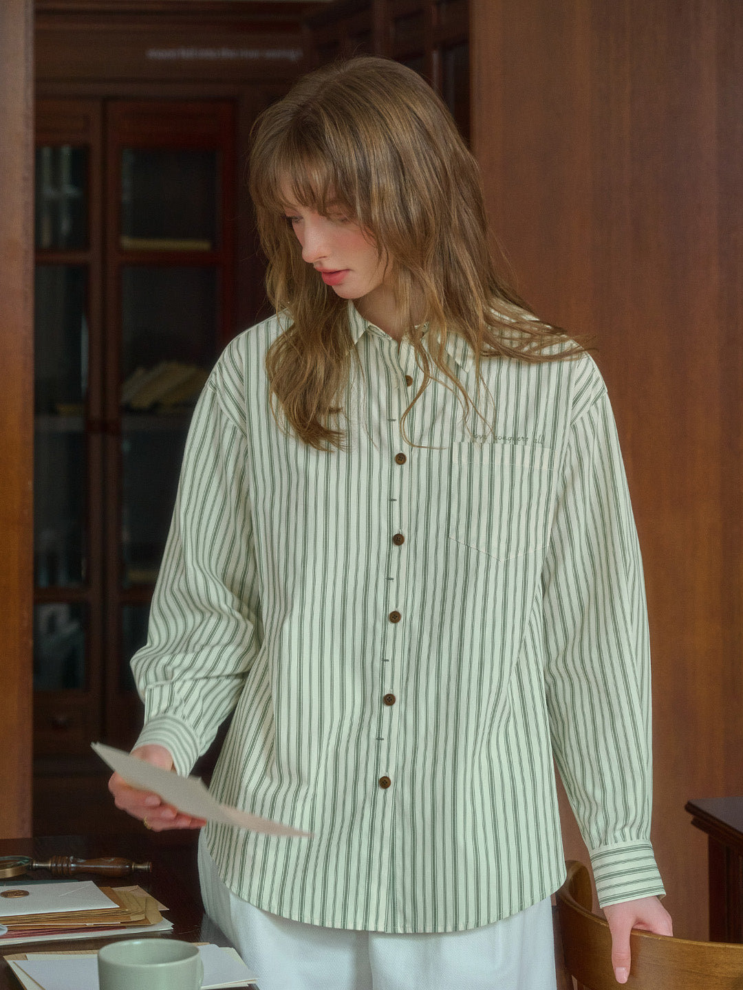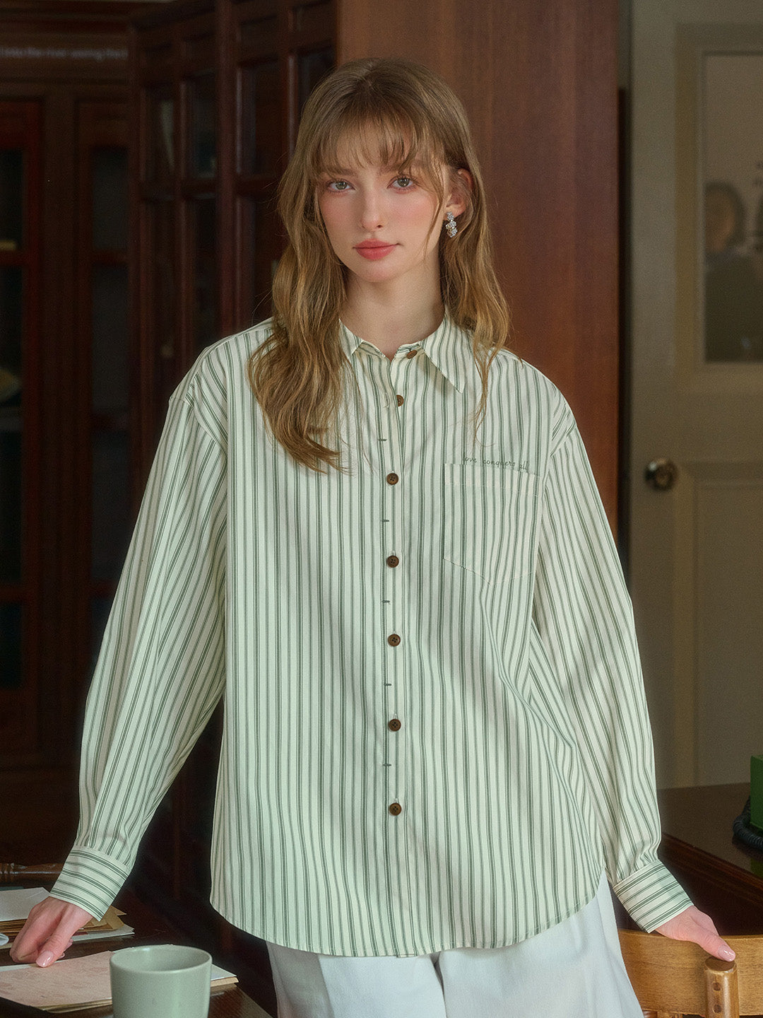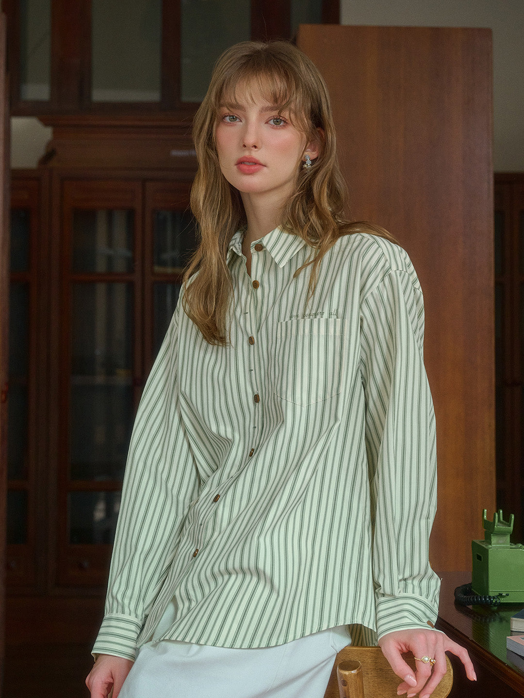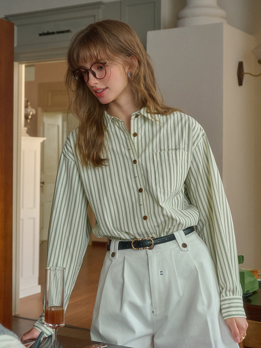 Luna 翻領條紋口袋襯衫