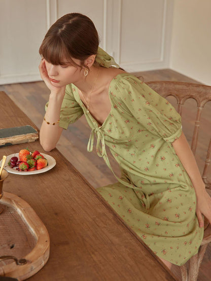 Rosalina 豆沙綠方領玫瑰碎花洋裝