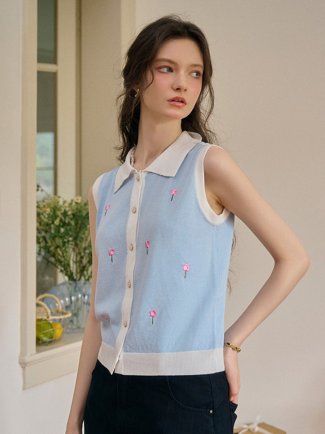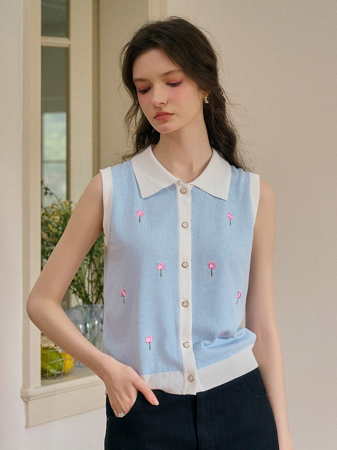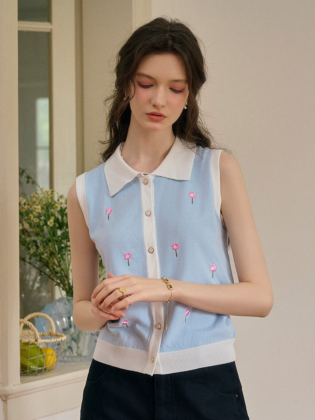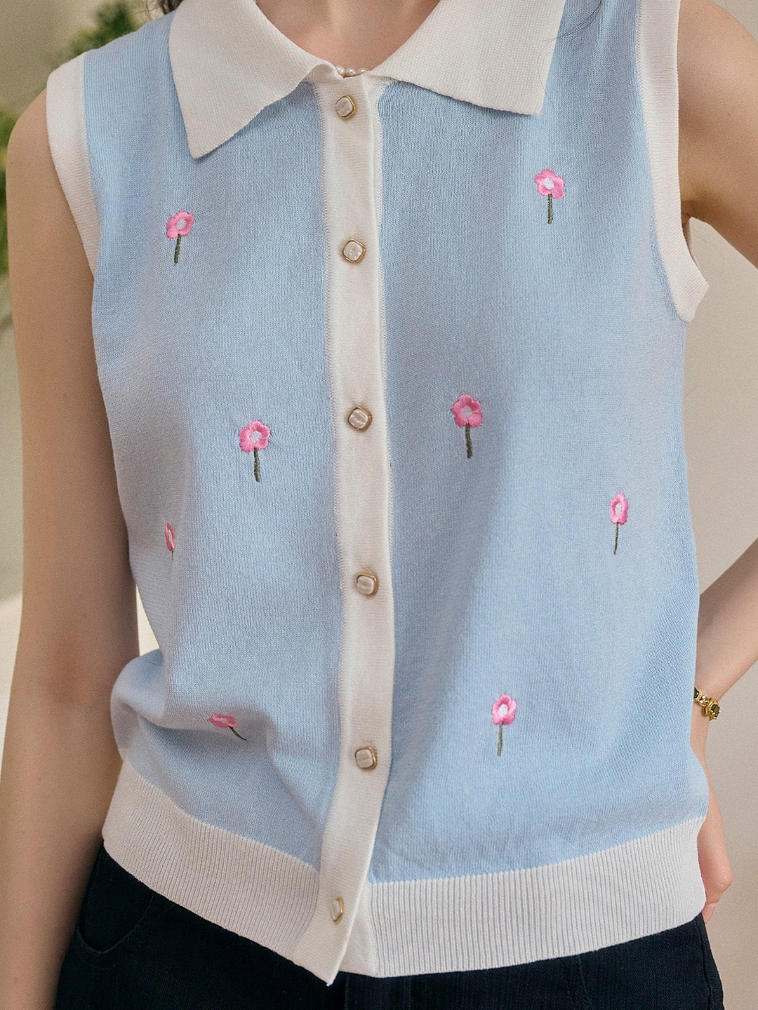 Savannah 圓領刺綉針織背心