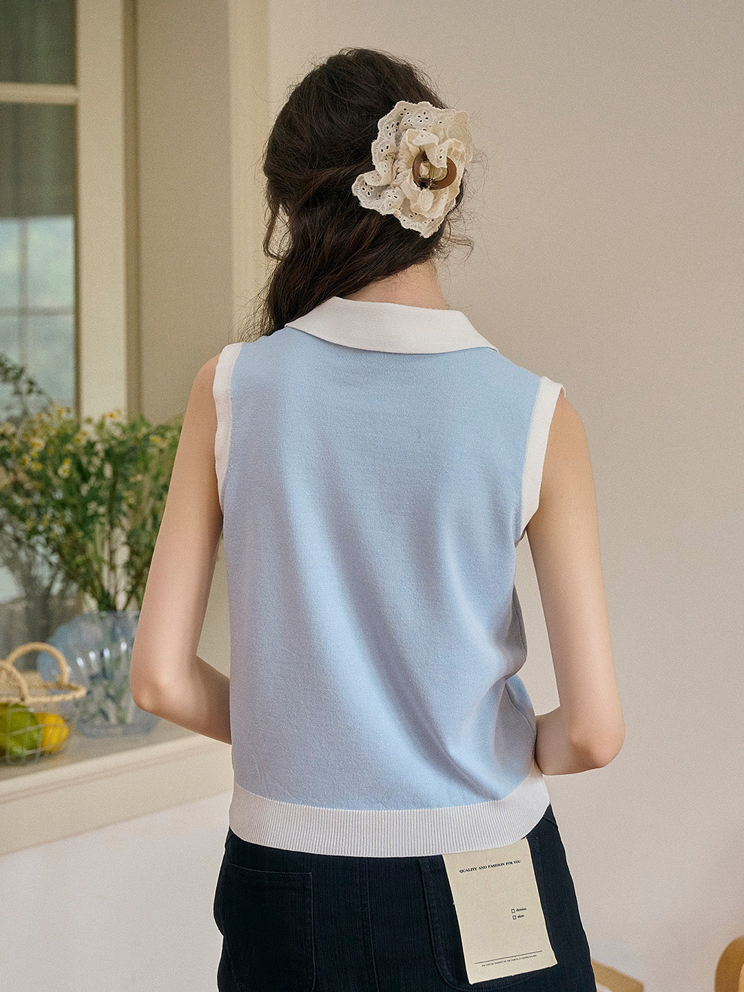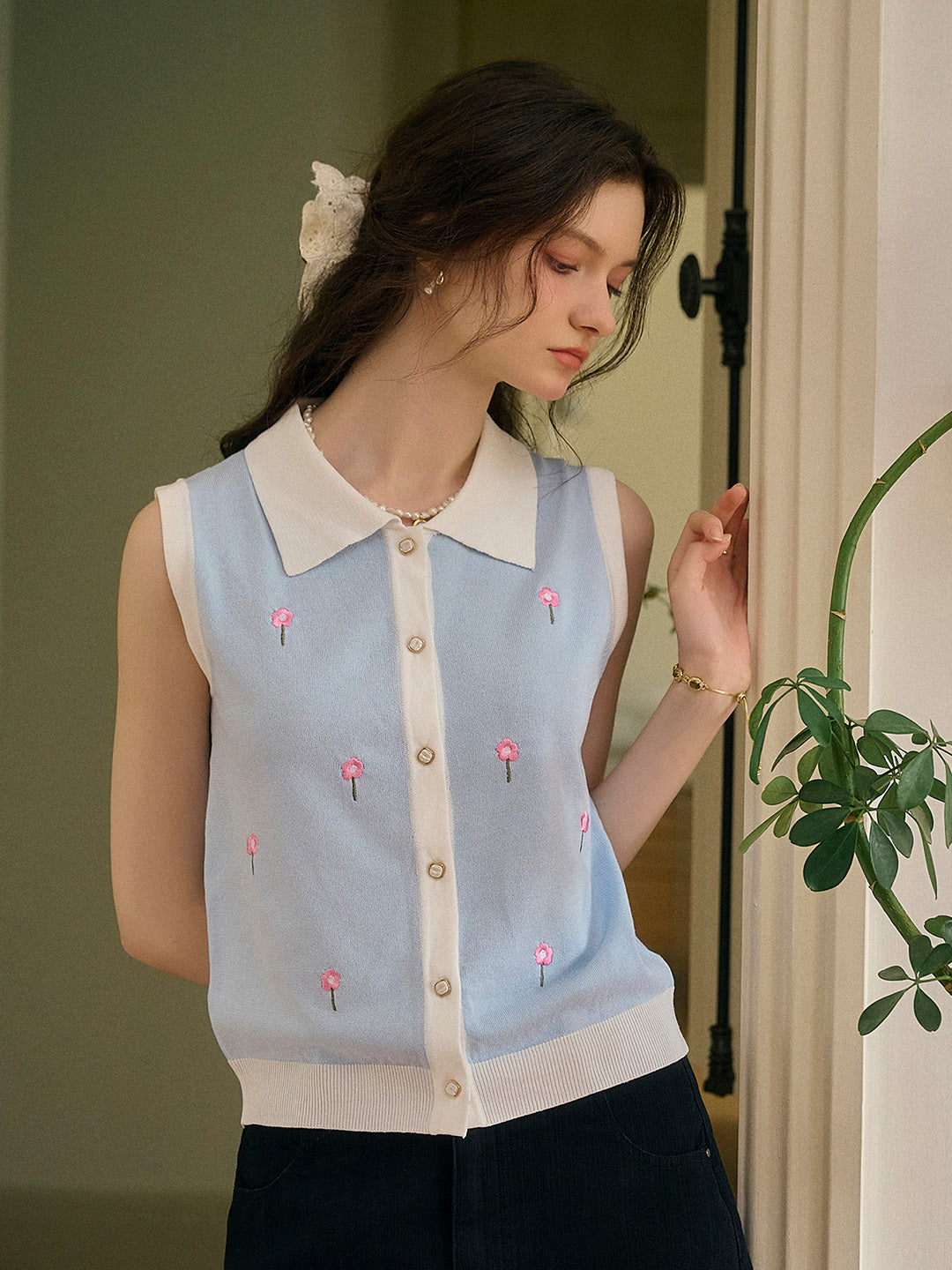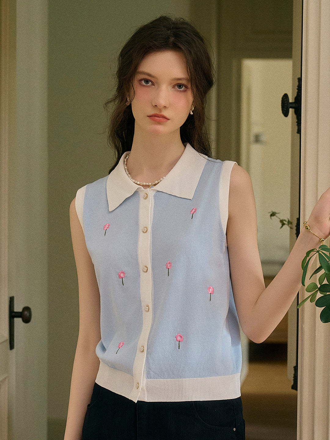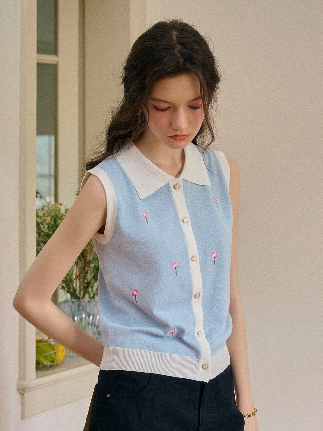 Savannah 圓領刺綉針織背心