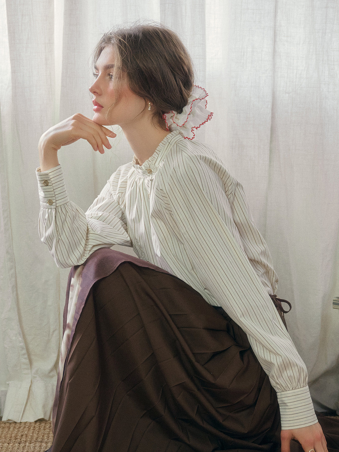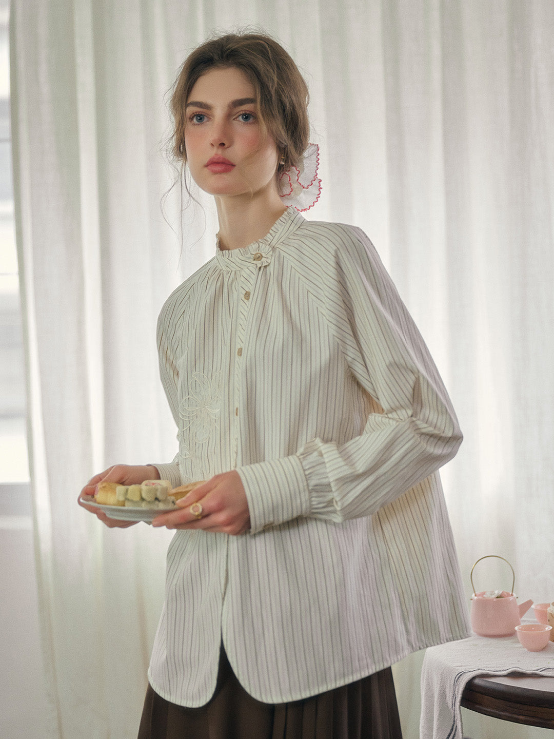Simone 高領條紋花卉上衣